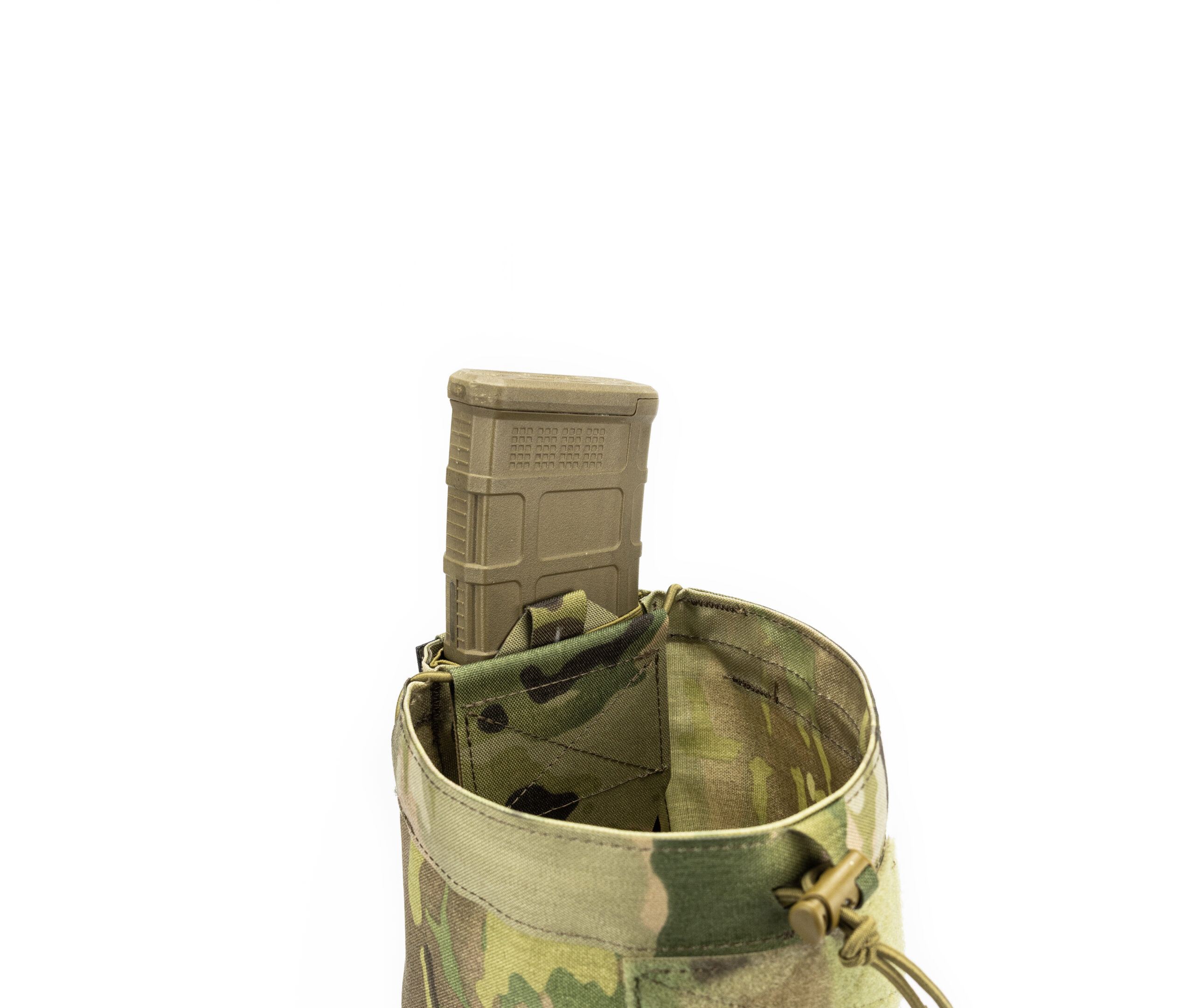 Сумка скиду “Kyset” розроблена для скидання відпрацьованих магазинів. Конструкція сумки дозволяє переносити один магазин всередині самої сумки з швидким доступом до нього. Клапан сумки дозволяє закривати її не дістаючи магазин з підсумку. В горловині сумки розташовано фіксатор з шокордом для додаткового закривання горловини.